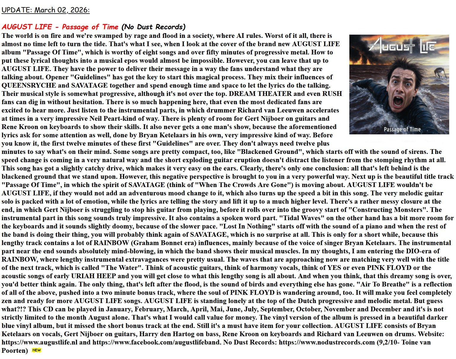 PASSAGE OF TIME, as well as other releases, here on the website